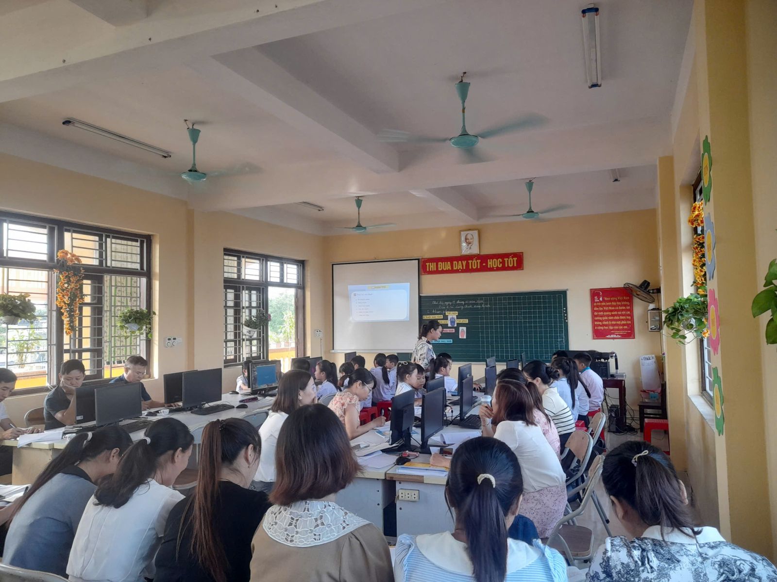 – Dự giờ mỗi nhóm 2 tiết (tổ chức ở trường nào thì giáo viên trường đó dạy), trao đổi về nội dung, phương pháp giảng dạy.