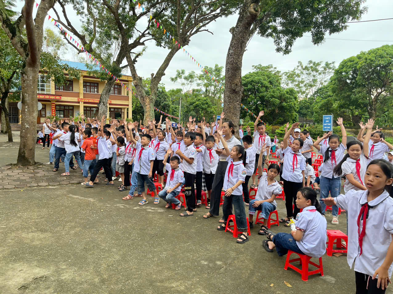 Các em học sinh hào hứng khi được chơi trò chơi và trả lời các câu hỏi liên quan đến ATGT